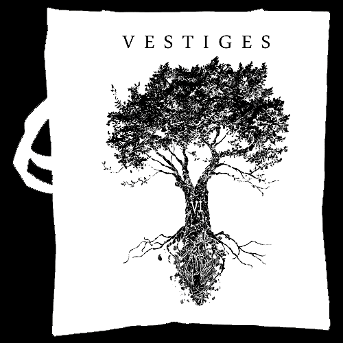 Offizielles Bandmerch! Vestiges Stoffbeutel mit grauem Druck auf schwarzen Beuteln oder schwarzer Druck auf naturfarbenen Beuteln! 100% Baumwolle!